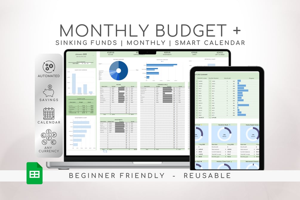 💚Monthly Saver Budget Spreadsheet | Google Sheets Budget Template, Budget Template, Monthly Planner, Spreadsheet Savings Budget Planner💚